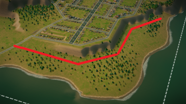然後我需要擴展道路,繼續規劃住宅區,這兒有一個很好的位置,我用紅筆把他畫起來