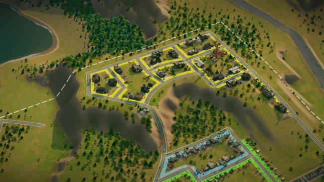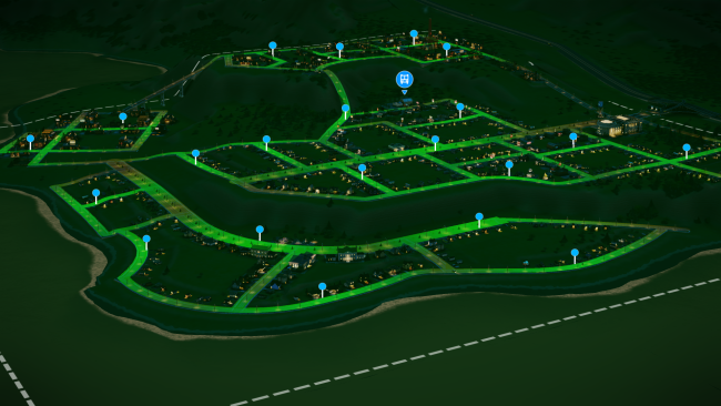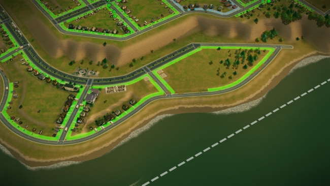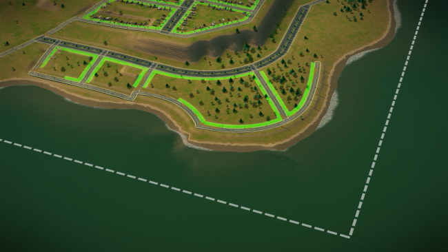 我在住宅區附近放置了一個公園,公園周圍的土地價值馬上提升了(就是微微綠色的那個範圍)