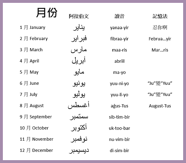 挑戰站 - "12個月"的阿拉伯文